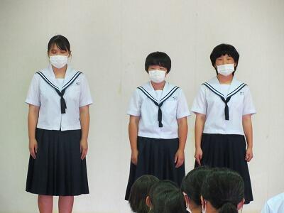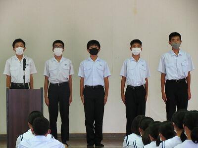 また、生徒会の代表生徒が「心は熱く、頭は冷静に」という校長先生のメッセージを添えて激励の言葉を述べてくれました。