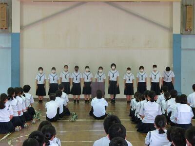 生徒を代表して、生徒会長が「細野中学校は、あいさつと清掃に一生懸命取り組んでいます。大切に使わせていただきます。」と感謝の言葉を述べていました。