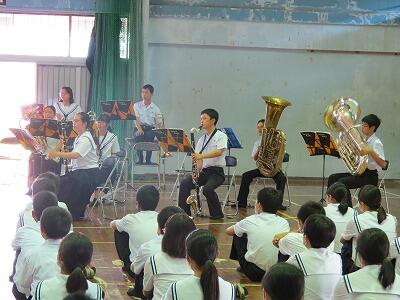 今日は、それに向けて全校の前で吹奏楽部の皆さんが演奏を披露しました。緊張しながらも息のあった演奏でした。中体連同様、吹奏楽部も悔いのないように頑張ってほしいです★