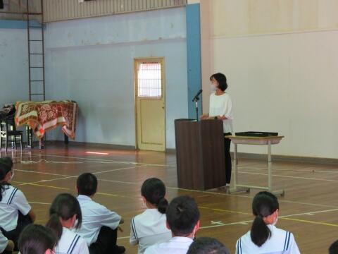 7月3日(金)、小林市地域婦人会の方が来校され、雑巾を50枚寄贈していただきました。細野中学校出身の皆さんばかりで、久しぶりに来校されて、中学校時代の見覚えのある風景に、懐かしい様子でした。また、元気のよい生徒のあいさつにびっくりされていました。