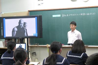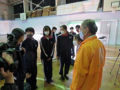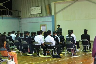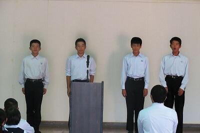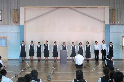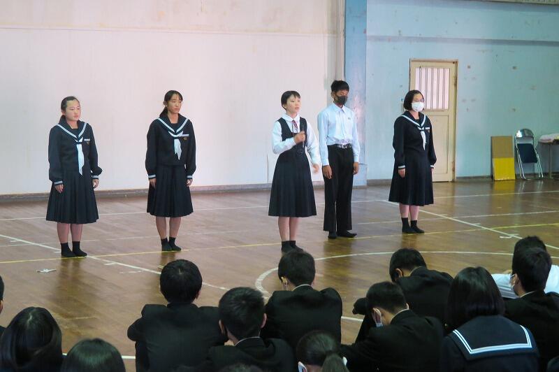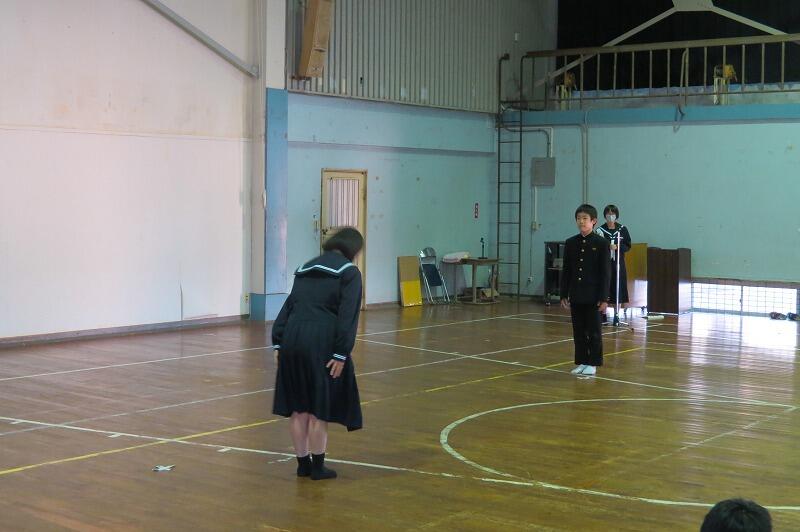 また、今回は『日本一のあいさつ』を目指して、生徒会役員があいさつのいい例と悪い例を見せて説明してくれました。その後、全校で行ったあいさつは体育館中に響きわたる大きな声でした。