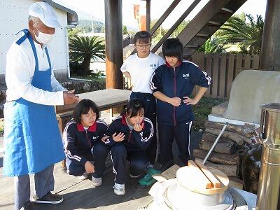 自分のご飯を作るために、かまどでご飯を炊き、お風呂を沸かしました。普段の生活の中では、なかなか体験することのできないことばかりで生き生きと活動している様子を見ることができました。