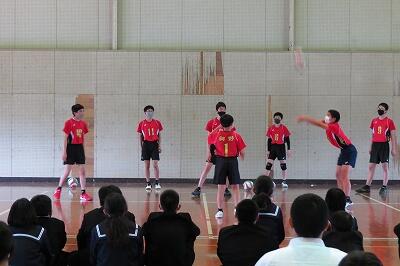 そして、いよいよ明日から5連休です。その過ごし方について、生徒指導担当から『感染症予防』『水難事故防止』『SNSの扱い』『金銭の貸し借り』等について話がありました。また、交通安全担当から「命を守る!」ということについて話がありました。