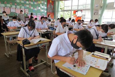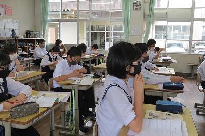 今回は“国語”を実施しました。一週間、朝自習の時間に勉強し、その内容からテストを行います。結果、なんと満点を取った生徒が全校で65人もいました!やった分だけ結果が出るテスト。みんなの努力に拍手です!継続は力なり!!