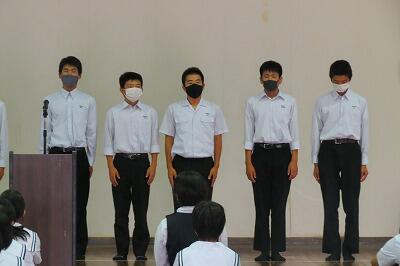 ↑ 令和3年度生徒会スローガン ↑ 議長団のみなさん