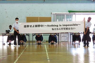 この生徒総会のために、学級で何回も話し合いを重ねてきました。そして何より、生徒会役員は春休みからずっと準備を進めてきました。この生徒総会が細野中の発展につながると期待しています!