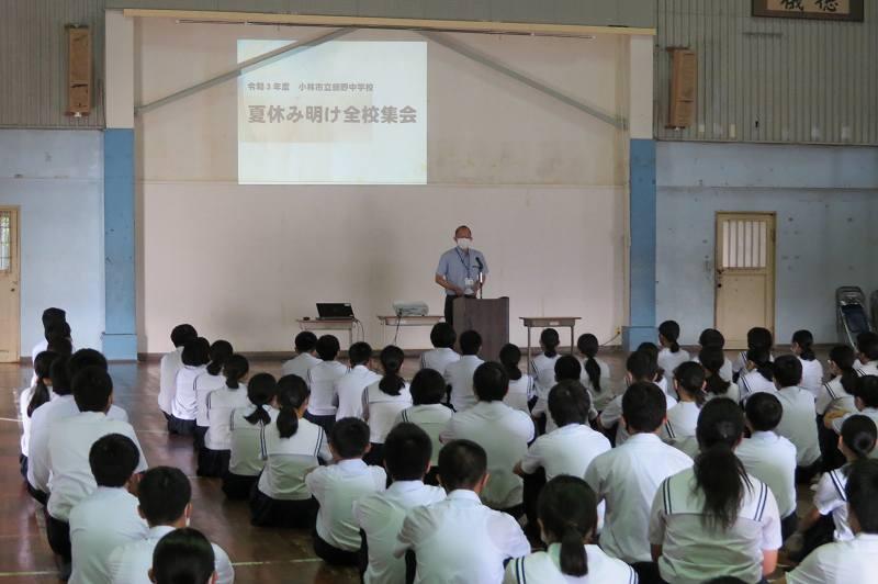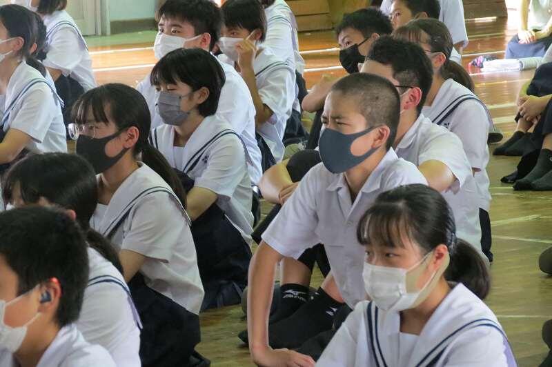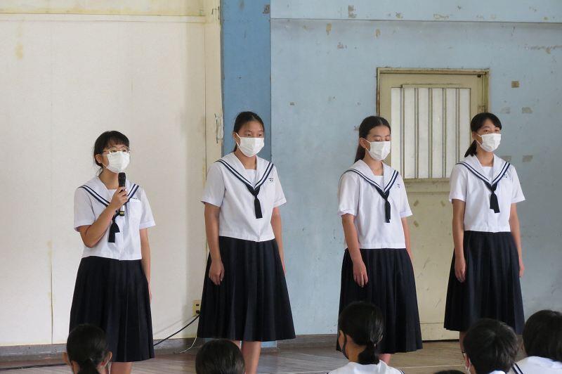 本日は感染症対策にこれまで以上に気をつけながら、集会活動からスタートしました。生徒集会では、各委員会の活動報告を行った後、今年度の生徒会役員選挙管理委員の紹介がありました。この委員会を中心に1・2年生の立候補者を支えていきます!