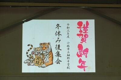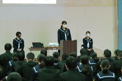 集会では、各学年・生徒会の代表生徒が新年の抱負を発表してくれました。