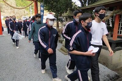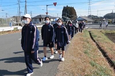 学校から出発して、菅原神社、霧島岑神社を参拝する新春根性行進が行われました。