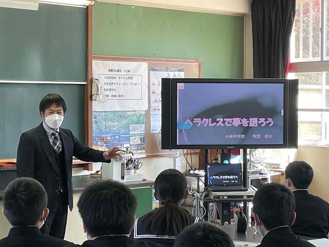 21日(金) 1年生キャリア教育で、牧野翔太先生(小林中学校)に「ヘラクレスで夢を語ろう」という