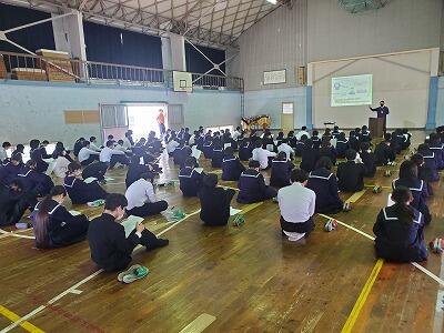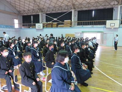 18日(月)は、学習に関するルールや各種検定への取組などの確認を行うために学習集会を行いました。
