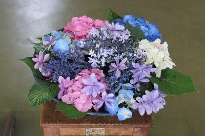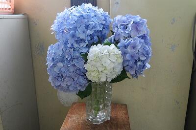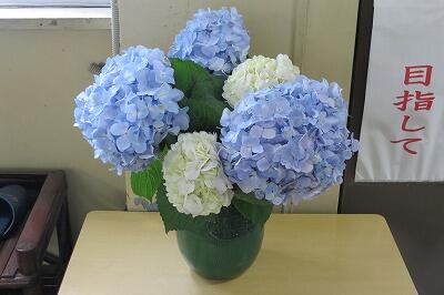 今朝(21日)、登校した生徒が、おうちの人に持っていくように言われたということで大輪の咲き誇るあじさいを抱えるように職員室に届けてくれました。あじさいの花は、時期によっても色が変化することから色ごとに花言葉が異なるそうです。『青=辛抱強い愛情』『ピンク=元気な女性』『白=寛容』(参照:www.hibiyakadan.com/lifestyle/m_0018/)です。早速、玄関などに生けさせていただきました。朝から癒やしと元気をいただいたような一日の始まりとなりました。ありがとうございます。