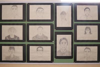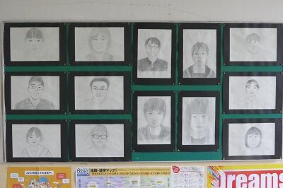美術の授業で製作された作品が、階段などの壁面に飾られています。とにかく力作揃い!