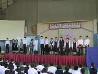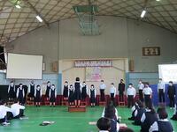 始業式に先立ち、各学級の役員が学級や学級旗の紹介、それに込められた意味とあわせて2学期の目標を
