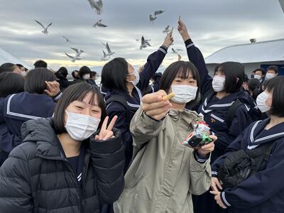 カモメと戯れたり、フェリーの甲板で景色を楽しんだりしていました。