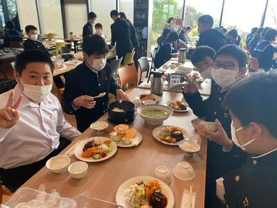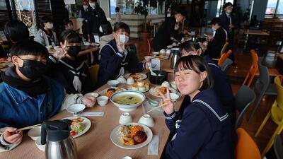 健康観察でも特に不調を訴える生徒は見られず、元気いっぱいに朝食をしっかりと食べていました。