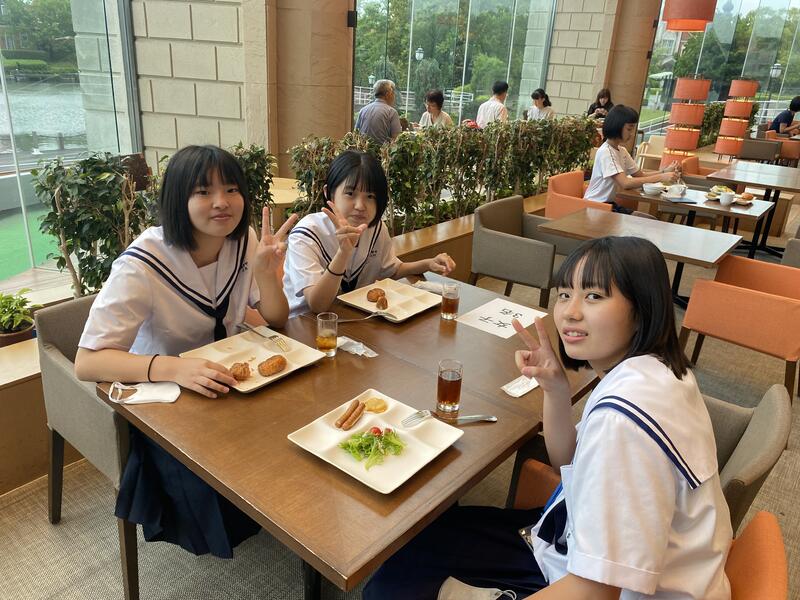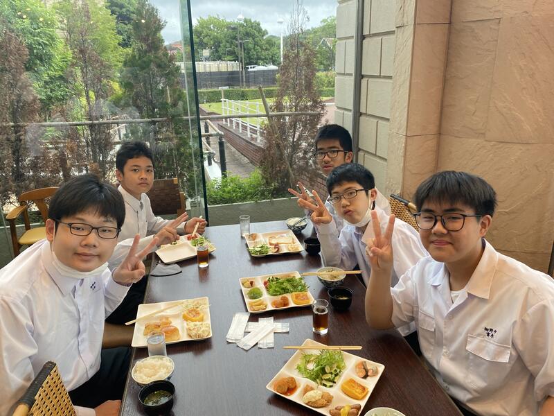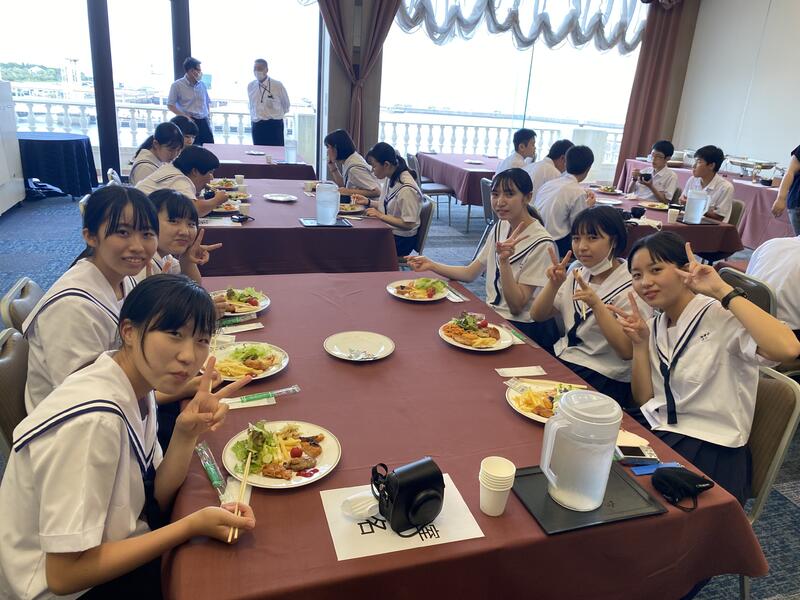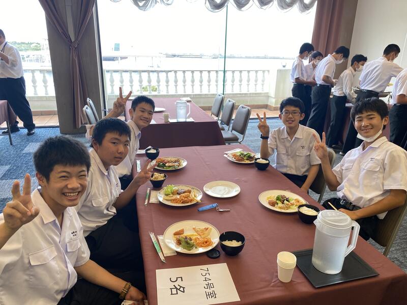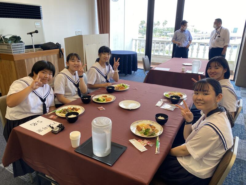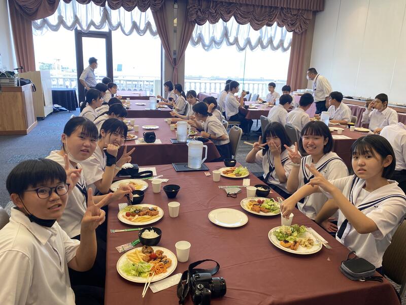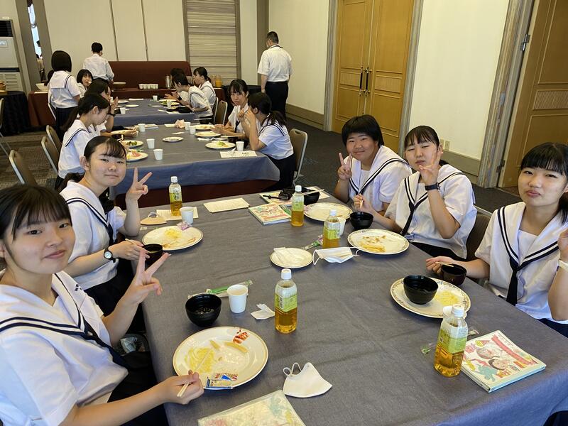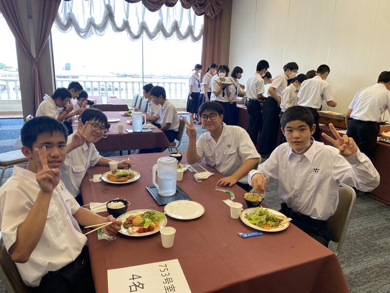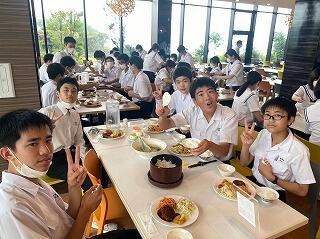 生徒たちは、ハンバーグがメインの昼食に満面の笑みをうかべ、お昼を楽しんでいました。