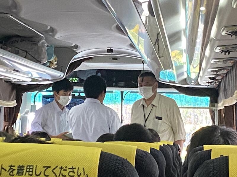 バスの中で解散式を行いました。