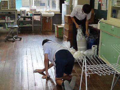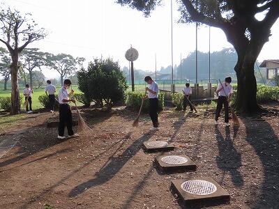 湿度が高く、少し体を動かすと汗をかいてしまう天気ですが、生徒たちは清掃活動を頑張っています。わずか10分間の掃除ですが、10分あればかなりきれいにすることができます。自分たちの学校を自分たちできれいにする、これも日本の伝統だと思います。