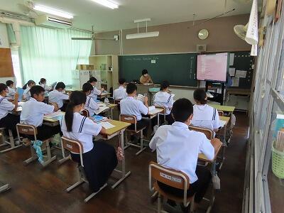本日3校時に行われた2年B組の国語の授業の様子です。単元名は「多様な方法で情報を集めよう」で、本時の目標は「職場体験学習に係る活動を通して集めた情報を分類・整理する」です。初めに、集めた情報を確認し、学習の見通しを持った後、資料作成に必要な情報の決定を行いました。個別にじっくり考え、その後複数人で意見を交換する活動を行いました。情報の真偽を確かめ、必要な情報を収集し選別する能力は今後ますます大切になります。国語のみならず様々な授業で将来必要となる力を身につけてほしいと思います。