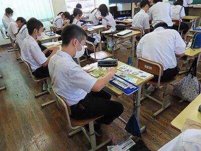 本日から第2回定期テストが始まりました。今日のテストは、1年生は技術家庭・英語、2年生は数学・社会、3年生は理科・国語でした。どの学年の生徒も集中して取り組んでいました。