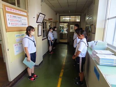 今朝はやや蒸し暑さを感じましたが、生徒たちは元気よく登校してきます。伝統のあいさつ運動ももちろん行っています。また、同時にボランティア活動をする生徒もいます。教室に入ると黙々と朝自習に取り組みます。そこにはいつも通りの光景が広がっています。生徒の皆さん、今日も充実した一日を送りましょう。