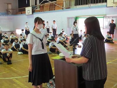 少し難しい表現もありましたが、生徒は真剣に観劇してました。当時の人々が置かれた状況に想いをはせ、平和の大切さについて考えるきっかけになったと思います。「サラみやざき」の皆さん、ありがとうございました。