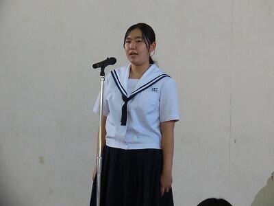 9月20日(金)に、須木総合ふるさとセンターで西諸県地区中学校英語暗唱・弁論大会が行われました。午前中は暗唱の部、午後から弁論の部が実施されました。暗唱は3分間、弁論は5分間です。本校からは、暗唱の部、弁論の部にそれぞれ2名の生徒が出場しました。惜しくも入賞は逃しましたが立派に発表してくれました。何より、挑戦する姿勢が素晴らしいと思います。参加した生徒はもちろん、指導していただいた先生方に感謝します。