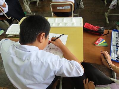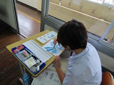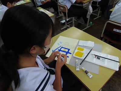 現在1年生は、美術の時間に「漢字」からイメージをふくらませて「絵文字」を制作しています。ユニークな作品がたくさんつくられています。子どもの持つ感性のすばらしさに驚くばかりです。