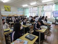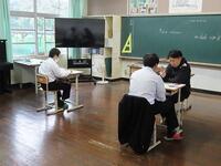 1年生の数学と国語の授業の様子です。数学は比例と反比例のグラフを描く学習、国語は文章から必要なことを読み取る学習でした。友達と協力しながら学び合う姿が見られました。