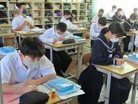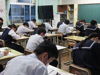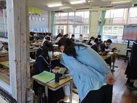 登校後の8時から20分間、朝自習に取り組んでいます。1・2年生も黙々と取り組んでいますが、3年生はより真剣に取り組む様子が見られ、緊張感すら漂っています。生徒の皆さん、「学問に王道なし」です。日々の取組を大切にしてください。