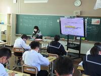 3年生は体育で、持久走及び金曜日に行われる校内駅伝・ロードレース大会の準備をしていました。天気にも恵まれ粘り強く走る姿が見られました。2年生は家庭科と社会の授業です。家庭科では、「家庭内で起きる事故の原因」を学び、社会では「エコツーリズム」について学習していました。