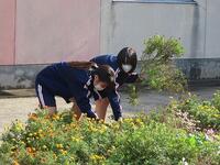 本日の3時間目、2年A組が技術の栽培の時間に、花を植える準備のため役目を終えた花を撤去する作業を行いました。次は新しい花を植える作業を行う予定です。2Aの生徒の皆さん、お疲れ様でした。