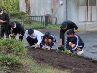 本日の1時間目に、2年生が技術の栽培の時間を使って花を植えました。雨上がりで気温も低く、寒い中での活動でしたが、友達と話をしながら楽しそうに植える姿が見られました。これで学校の環境がますますよくなります。