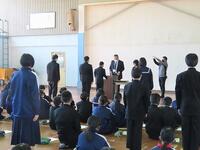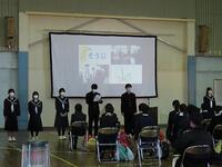 昨日の12月19日(木)に新入生説明会を行いました。細野小学校6年生と保護者の皆様方にお越しいただき、寒い中ではありましたが説明会を開催することができました。ご多用な中お越しいただきました保護者の皆様方、ありがとうございました。説明会では校長あいさつの後、学校生活について生徒会役員が話をしました。その後3年生による合唱の発表を行い、学習面や生活面及び保健面について本校職員から説明を行いました。約50分の説明会でしたが、6年生は最後までしっかり話を聞いてくれました。来年の4月が楽しみです。皆さんの入学を心から歓迎します。
