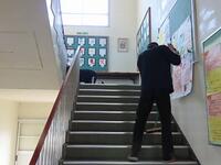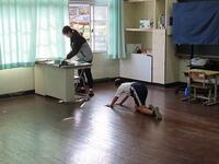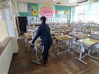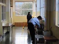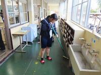 本校の清掃時間は10分間です。短い時間ですが、少ない人数で効率よく無言で清掃に取り組んでいます。無心で掃除をすると心が洗われるようです。