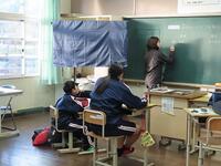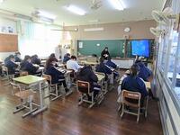 本日は、本校の伝統的行事である「根性行進」を実施します。1時間目はフリー参観として保護者の方々に授業を参観していただき、2時間目から4時間目にかけて「根性行進」を行います。学校を出発して、約10km歩きながら同時に美化活動も行います。写真はフリー参観の様子です。