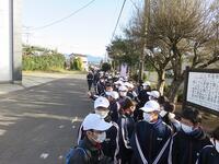 本日、2時間目から4時間目にかけて「根性行進」を実施しました。行程は約10kmで、学校⇒牧場⇒出の山公園⇒牧場⇒霧島岑神社⇒学校です。歩きながらごみを拾い、友達と会話をしながら行進をしました。途中、保護者の方々に交通指導をしていただき、安全に行進することができました。また、昼食時には早朝より準備をしていただいた温かい豚汁をふるまっていただきました。ご協力いただきました保護者の皆様方、本当にありがとうございました。子どもたちも「根性」が身に付いたと思います。