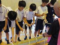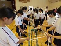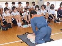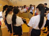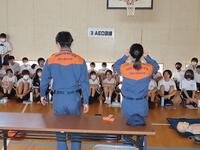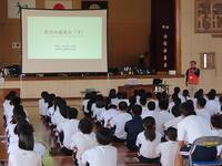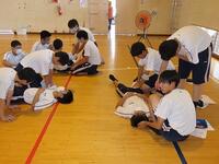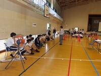 本日の午前中、参観日を兼ねて小中合同の「ほそのっこ防災フェスタ」を行いました。この行事の目的は次の3つです。①講話や様々な体験活動を通して、地震や火災等の非常時の際の行動や対処法についての知識・技能を身に付けることで、災害時に自身の命を守るだけではなく、他者を助ける力も養う。②保護者の方々にも参加してもらうことで、生徒と一緒に防災意識を高め、家庭でも災害時の対応について話すきっかけをつくる。③小学校や地域の方々と連携した活動を行うことで、災害時における協力体制を確立するとともに、地域の一員として防災意識を持たせる。暑い中での活動になりましたが、子どもたちは真剣に講話を聴き、積極的に挙手をし、体験活動(ロープ体験・段ボールベッド作成・AED訓練・けが処置体験・煙体験・非常食体験など)にも進んで取り組んでいました。講話でも話されていましたが、防災の基本は「自分の命は自分で守る」ことです。災害時に現状をしっかり判断し、自分で決めて行動する力が必要です。災害対策である「自助」「共助」「公助」を今後も意識して生活してほしいと思います。今回の活動で子どもたちも多くのことを学び、防災に関する意識が高まったと感じました。ご協力いただきました、細野まちづくり協議会、SVC、西諸広域行政事務組合消防本部、小林警察署、小林市役所危機管理課、青少年育成市民会議細野支部の皆様方、本当にありがとうございました。