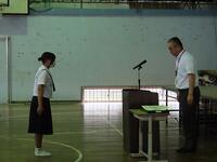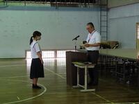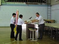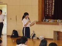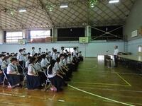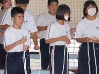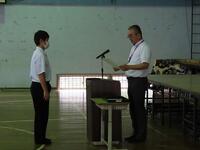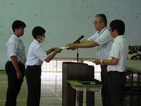本日6時間目終了後、表彰式を行いました。先日行われた第76回西諸県地区中学校総合体育大会における表彰が弓道部、男女ソフトテニス部、第24回穆園旗での表彰が軟式野球部でした。また、体力テストA判定者の表彰も行いました。全校生徒の前で表彰されることはとても名誉なことだと思います。今後の活躍に期待します。