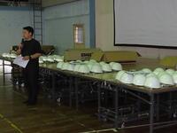 本日の給食終了後、緊急の全校集会を行いました。昨日、新燃岳が7年ぶりに噴火し、小林市でも降灰が確認されました。今後も影響を及ぼす噴火が発生する恐れもあることから、小林市教育委員会より通知があり、登下校時や屋外での活動においてはマスクを着用すること、頭部を保護するためのヘルメットを携行することとしました。自転車通学生はヘルメットをもっていますので、それ以外の生徒には学校で保管しているヘルメットを配付しました。先日の防災学習で学んだように、「自分の命は自分で守る」ことを意識して生活してほしいと思います。