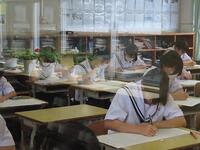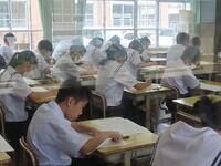 3年生第1回地区実力テストが始まりました。本日は国語・理科・英語の3教科、明日は社会・数学の2教科が行われます。緊張した面持ちで試験に臨む姿が見られました。頑張れ3年生!