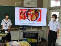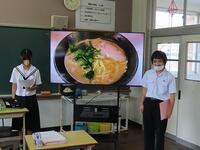 本日の2時間目、D組の英語の授業の様子です。1年生はカードを使って動作の確認をする学習を行っていました。2年生は、「売り出したいラーメンのCM台本を作りましょう!」という学習で、読む練習を繰り返して堂々と発表することができていました。みんな楽しそうにに授業に臨んでいました。