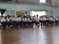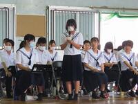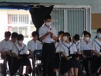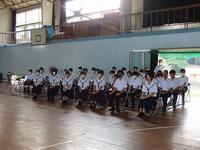 本日の6時間目終了後、県中学校総合体育大会及び県吹奏楽コンクールの壮行会を行いました。決意表明や演奏の後に生徒会代表の激励の言葉がありました。今まで練習してきたことを信じ、支えていただいた方々への感謝の気持ちを忘れず精いっぱい大会やコンクールに臨んでほしいものです。皆さんの活躍を心から祈ります。