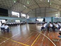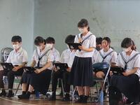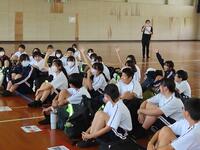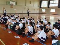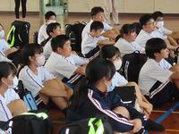 明日から37日間の夏休みが始まります。夏休みを前に、全校生徒を対象にして「夏休み前集会」を行いました。校長の話の後に、学習面、生活面、保健面、その他についてそれぞれの担当から話をしました。計画的に学習することや睡眠の大切さ、メディアコントロールの大切さ、虫歯治療の大切さ、タブレットの使い方など話は多岐にわたりましたが、生徒たちは最後までしっかり話を聞いていました。集会の最後は表彰を行いました。数多くの生徒が表彰されました。賞状を受け取る生徒の誇らしげな表情が印象的でした。生徒の皆さん、明日から楽しみにしていた夏休みが始まりますが、何より夏休み明けに全員が無事に登校することが一番です。命を大切にして充実した夏休みを過ごしましょう。