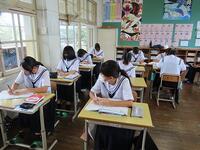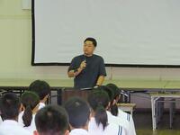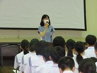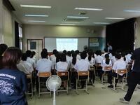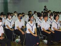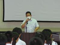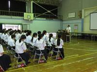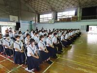 明日から37日間の夏休みが始まります。夏休みを前に、全校生徒を対象にして「夏休み前集会」を行いました。校長の話の後に、学習面、生活面、保健面、その他についてそれぞれの担当から話をしました。計画的に学習することや睡眠の大切さ、メディアコントロールの大切さ、虫歯治療の大切さ、タブレットの使い方など話は多岐にわたりましたが、生徒たちは最後までしっかり話を聞いていました。集会の最後は表彰を行いました。数多くの生徒が表彰されました。賞状を受け取る生徒の誇らしげな表情が印象的でした。生徒の皆さん、明日から楽しみにしていた夏休みが始まりますが、何より夏休み明けに全員が無事に登校することが一番です。命を大切にして充実した夏休みを過ごしましょう。