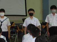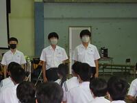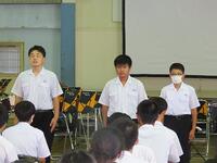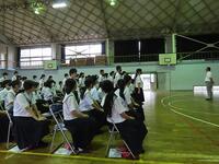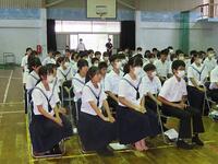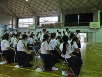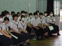 本日の6時間目終了後、県中学校総合体育大会及び県吹奏楽コンクールの壮行会を行いました。決意表明や演奏の後に生徒会代表の激励の言葉がありました。今まで練習してきたことを信じ、支えていただいた方々への感謝の気持ちを忘れず精いっぱい大会やコンクールに臨んでほしいものです。皆さんの活躍を心から祈ります。