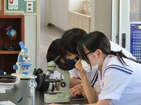 本日の3時間目、2年生理科の授業の様子です。今日の学習課題は、「植物と動物の細胞のつくりを観察し、共通点と相違点を見つけよう」です。玉ねぎの細胞を熱心に観察する姿が見られました。