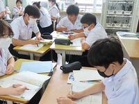 7月1日(火)に実施した生徒総会において、みんなが楽しく過ごせる学校づくりのために「他学年と交流する場所を設定する」ことが全校討議で可決されました。本日は試験的に昼休み時間の20分間を利用して取り組みました。雑談をする生徒、図書室で読書をする生徒、教室で勉強をする生徒、体育館で球技を楽しむ生徒、皆それぞれの活動場所で楽しそうに過ごしていました。自分たちで考えた取組です。反省を生かしてより良いものにしていき、細野中学校の伝統にまで高めてほしいものです。