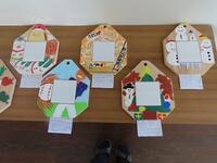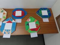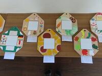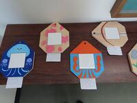 1年生の廊下に展示してある美術作品です。実際に家庭で使用できる「鍋敷き」です。どの作品も個性的でとても素敵です。家族で鍋を囲んで話に花を咲かせてほしいものです。